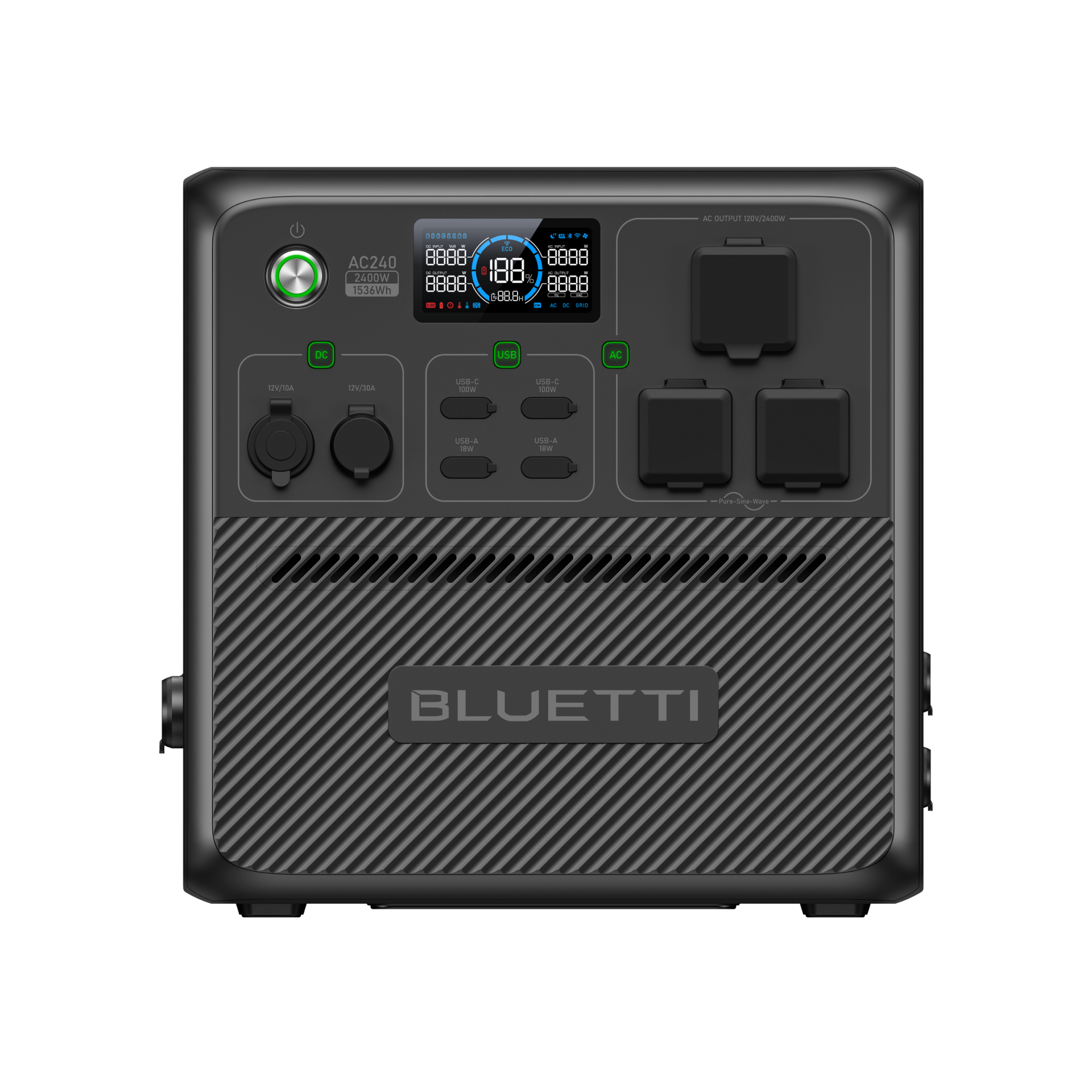 With its high capacity, the portable BLUETTI AC240 Power Station supports solid solutions for any emergency power requirement. It efficiently works with essential devices and appliances during an outage at 2,400W output and 1,536Wh capacity. IP65 water and dust resistance makes it very durable, and a 2,200W AC input gets it charged from 0-80% in just 45 minutes. It can be expanded to 10,136Wh with more batteries to hold more backup power. The AC240 will also endure a max solar input of 1,200W.