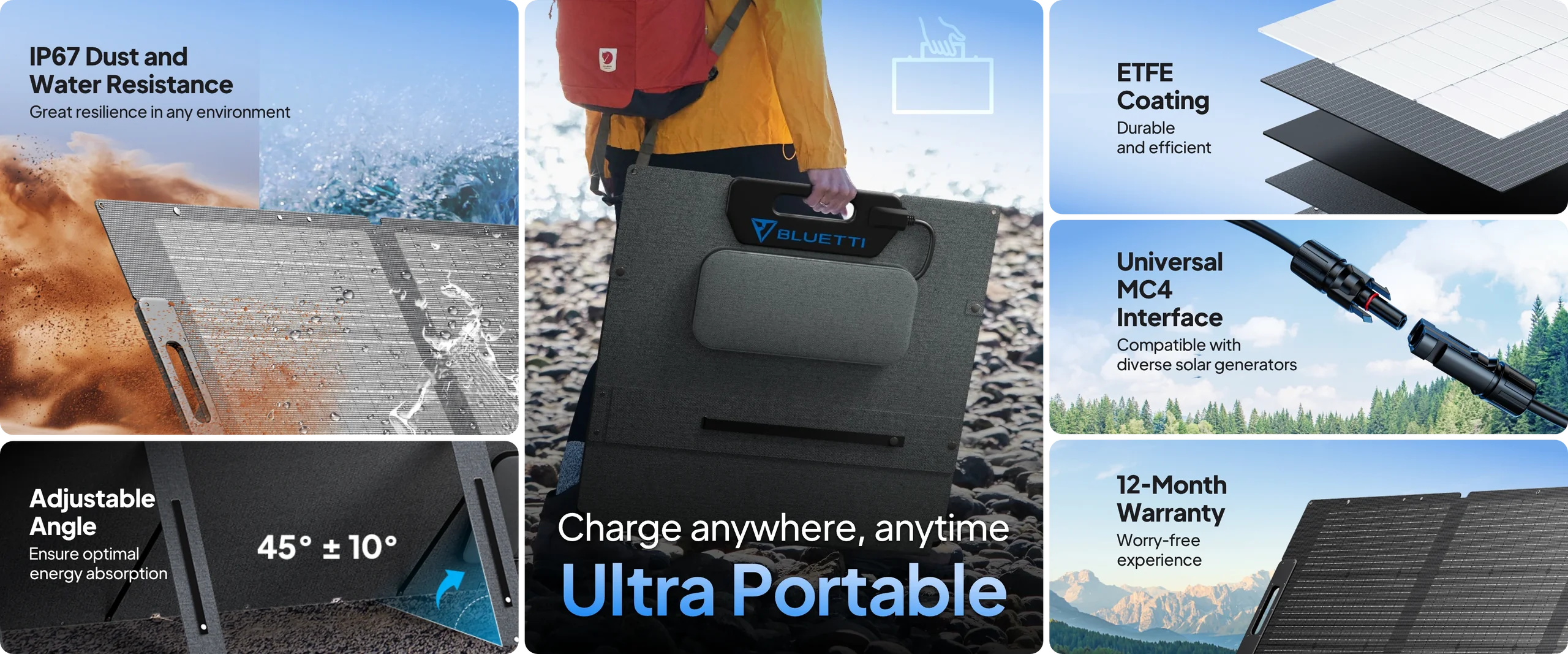 UN:Non. Le BLUETTI SP200L est étanche (IP67) et protégé contre les projections d'eau. Veuillez ne pas l'exposer trop longtemps à la pluie ou à l'eau. -