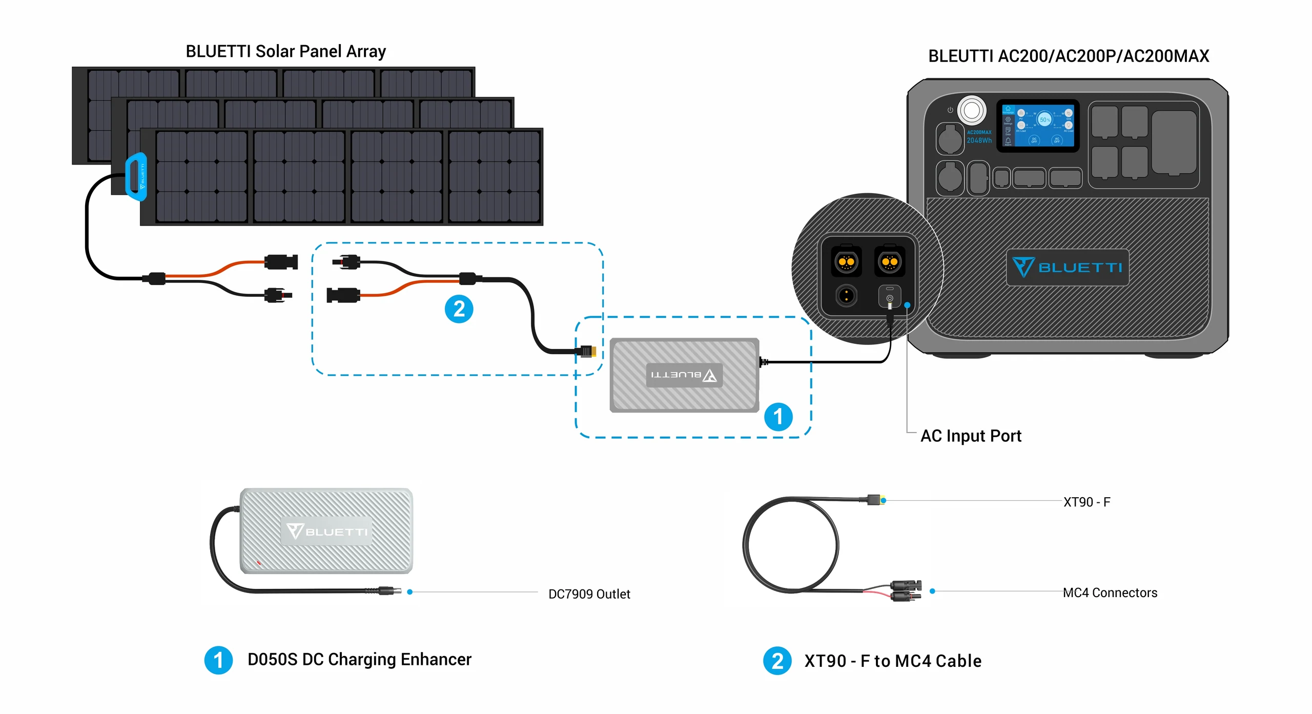 * Increase the PV input rate to 1200W for the BLUETTI AC200/AC200P; 1400W for the BLUETTI AC200Max.