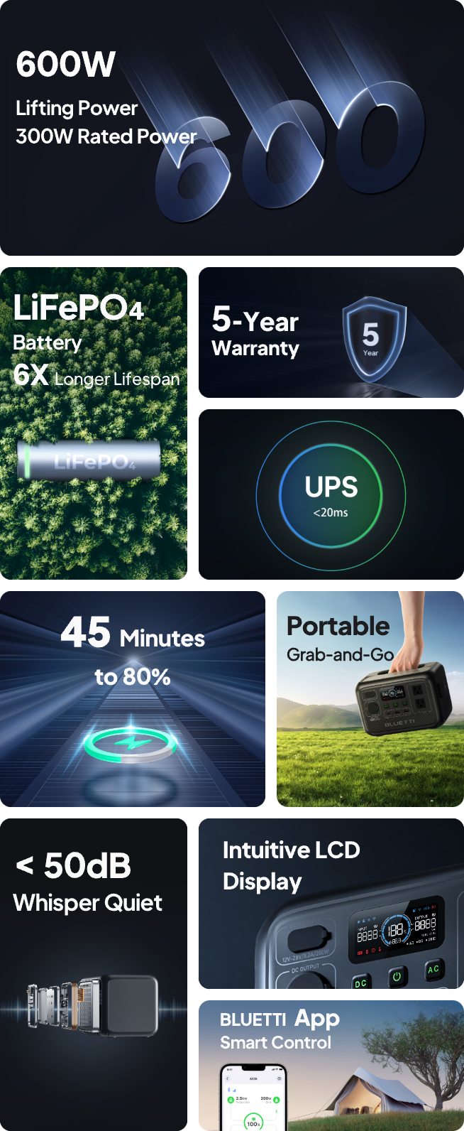 * The LiFePO₄ battery has 3,000+ charge cycles, meaning that after 8 years of proper use, it retains 80% of its original capacity. The overall lifespan is expected to reach over 10 years.