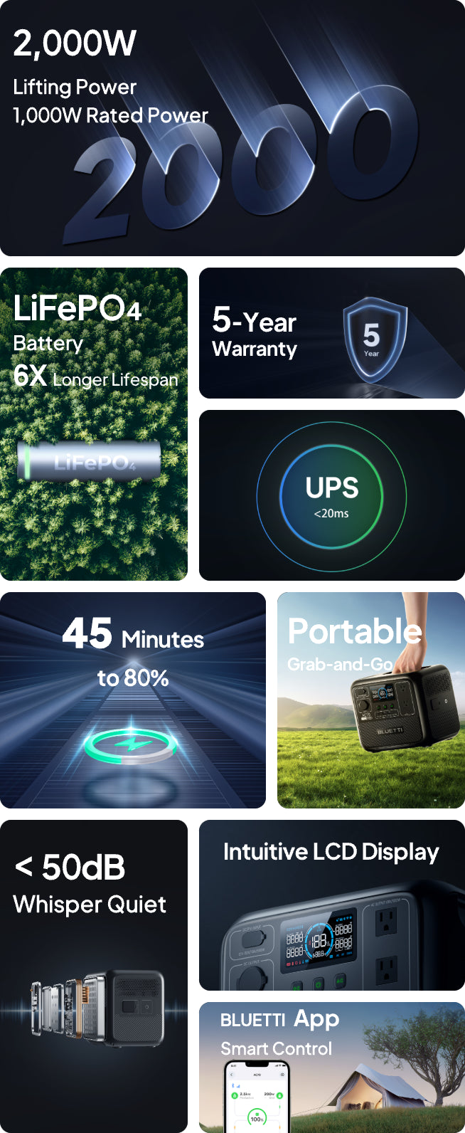 * The LiFePO₄ battery has 3,000+ charge cycles, meaning that after 8 years of proper use, it retains 80% of its original capacity. The overall lifespan is expected to reach over 10 years.