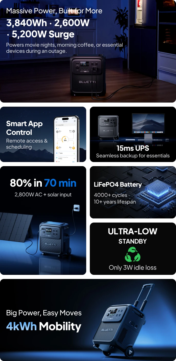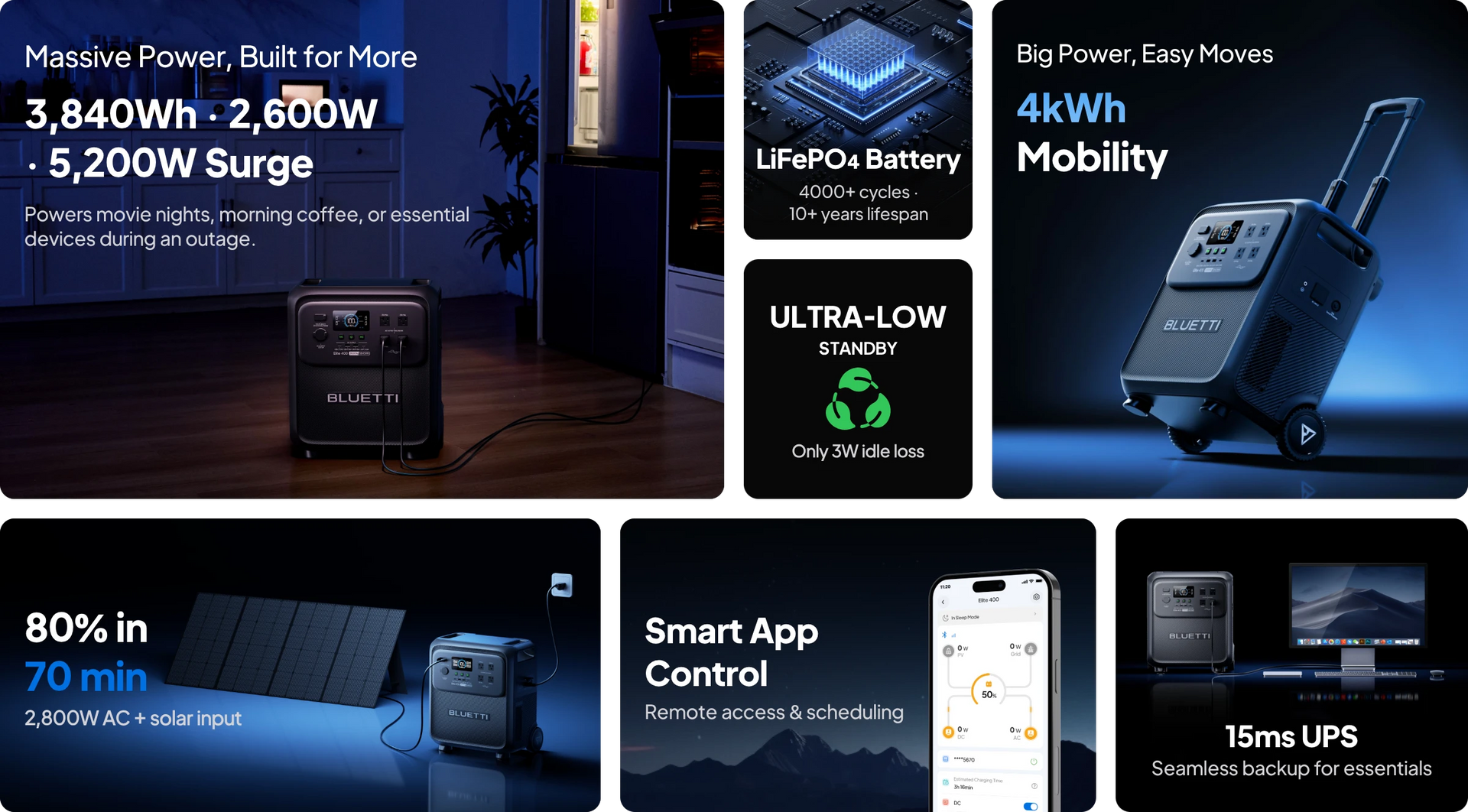 3,840W | 2,764.8Wh | 560W Charger | 700W DC Power Hub