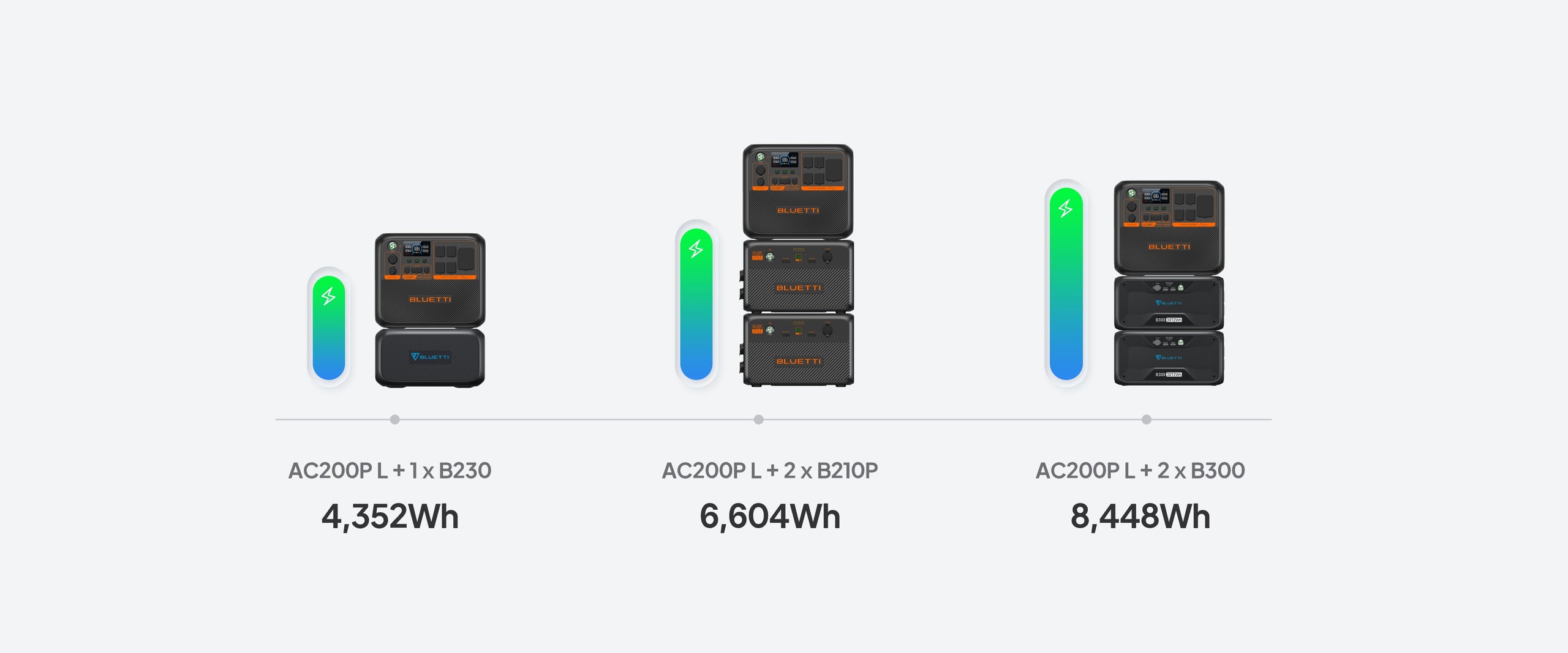 AC200L + 2* B300 = 8,192Wh. -
