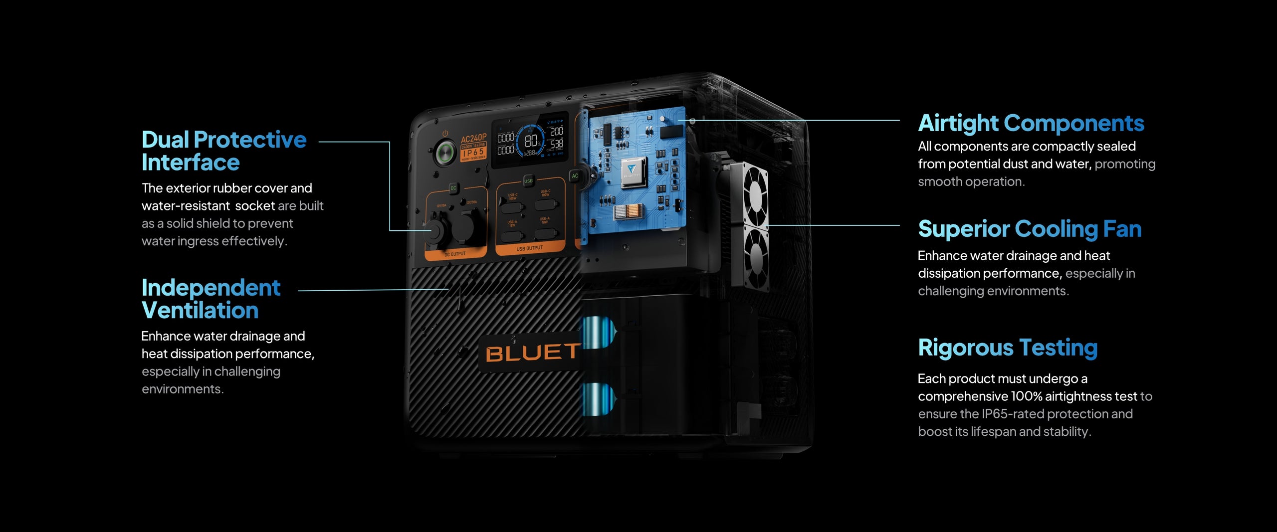A: AC240P has a built-in intelligent BMS (Battery Management System) that automatically adjusts the charging power in response to the battery temperature and SoC (State of Charge), thus protecting the battery and extending its lifespan.