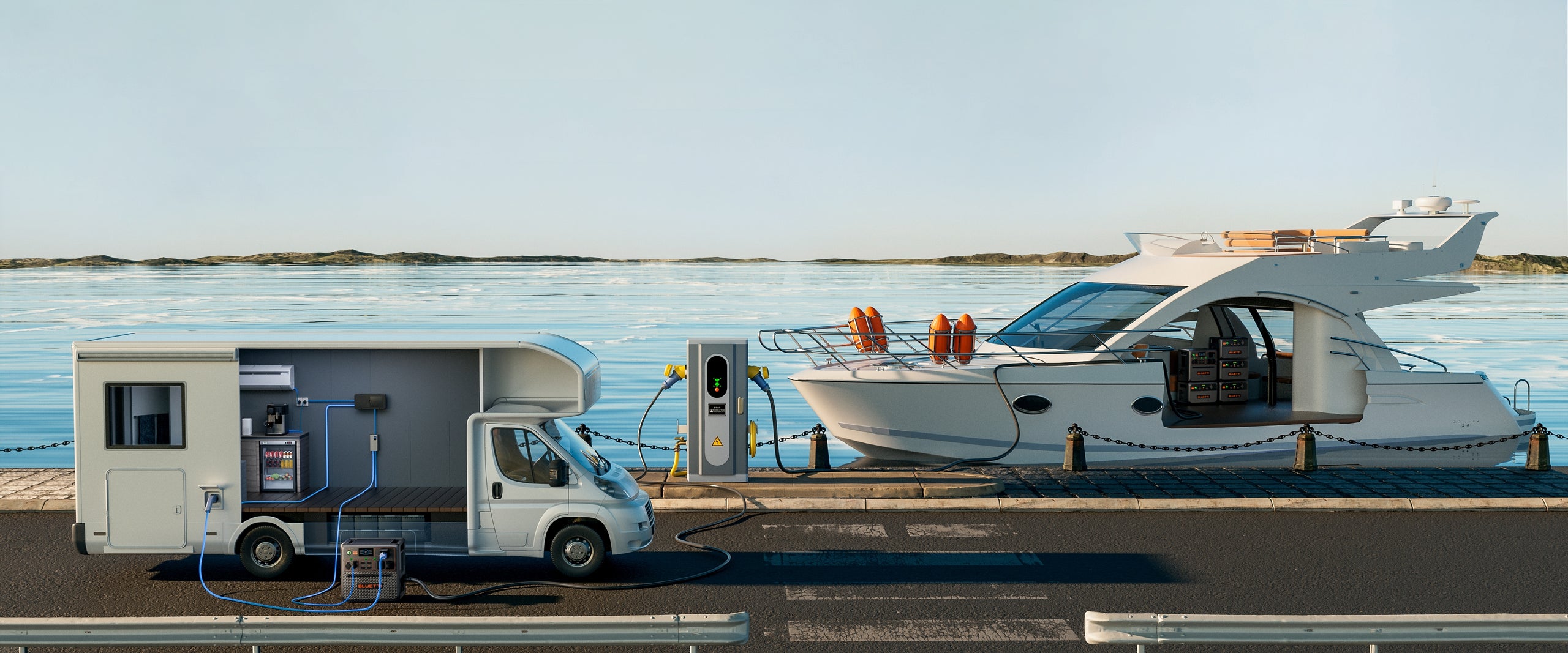 Shore power charging: An extra adapter cable is required. How to connect: shore power outlet → adapter cable → charging inlet of AC240P.