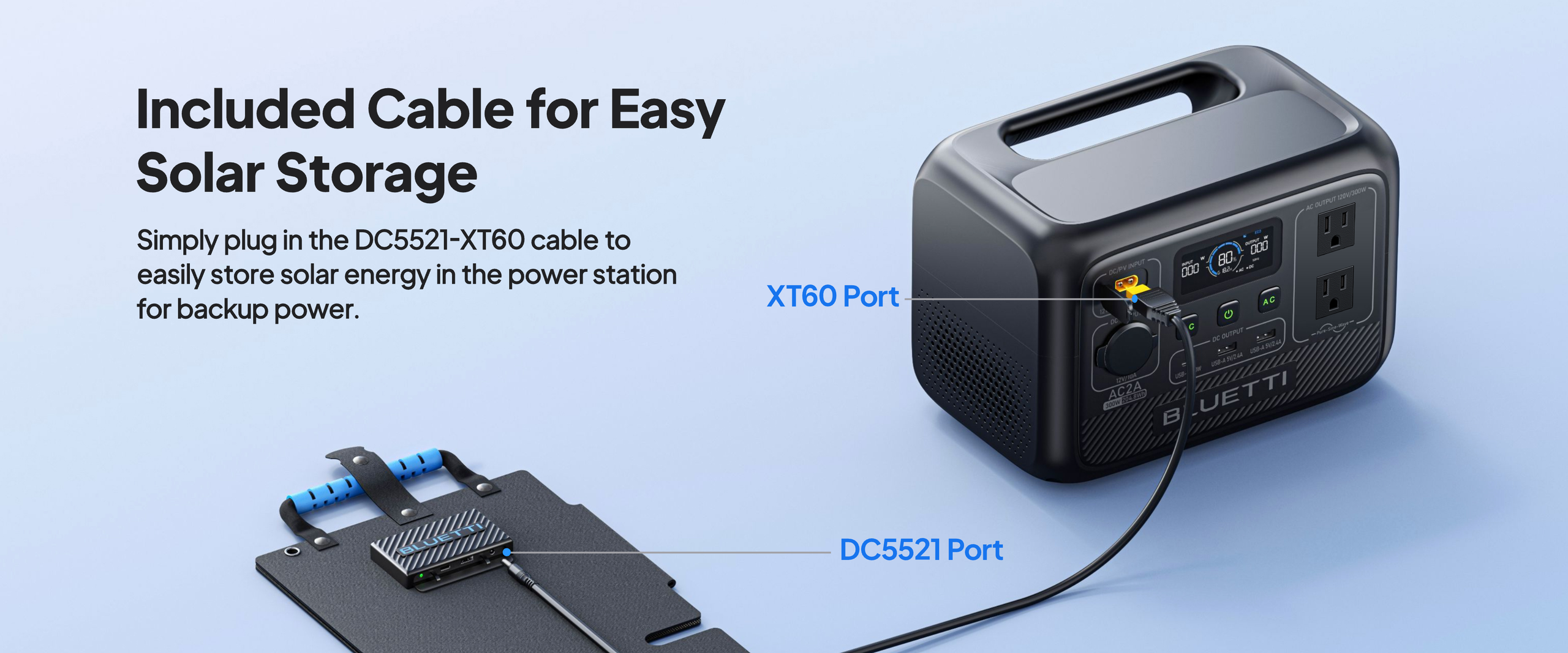 Included Cable for Easy Solar Storage