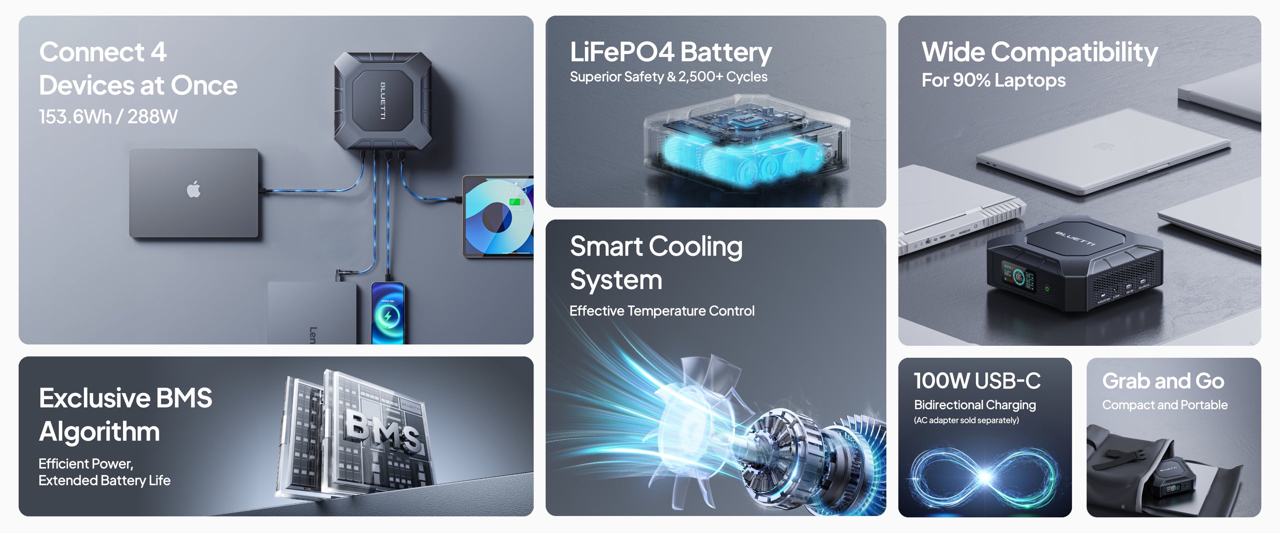 BLUETTI X20 Power Bank for Laptop | 288W 153Wh